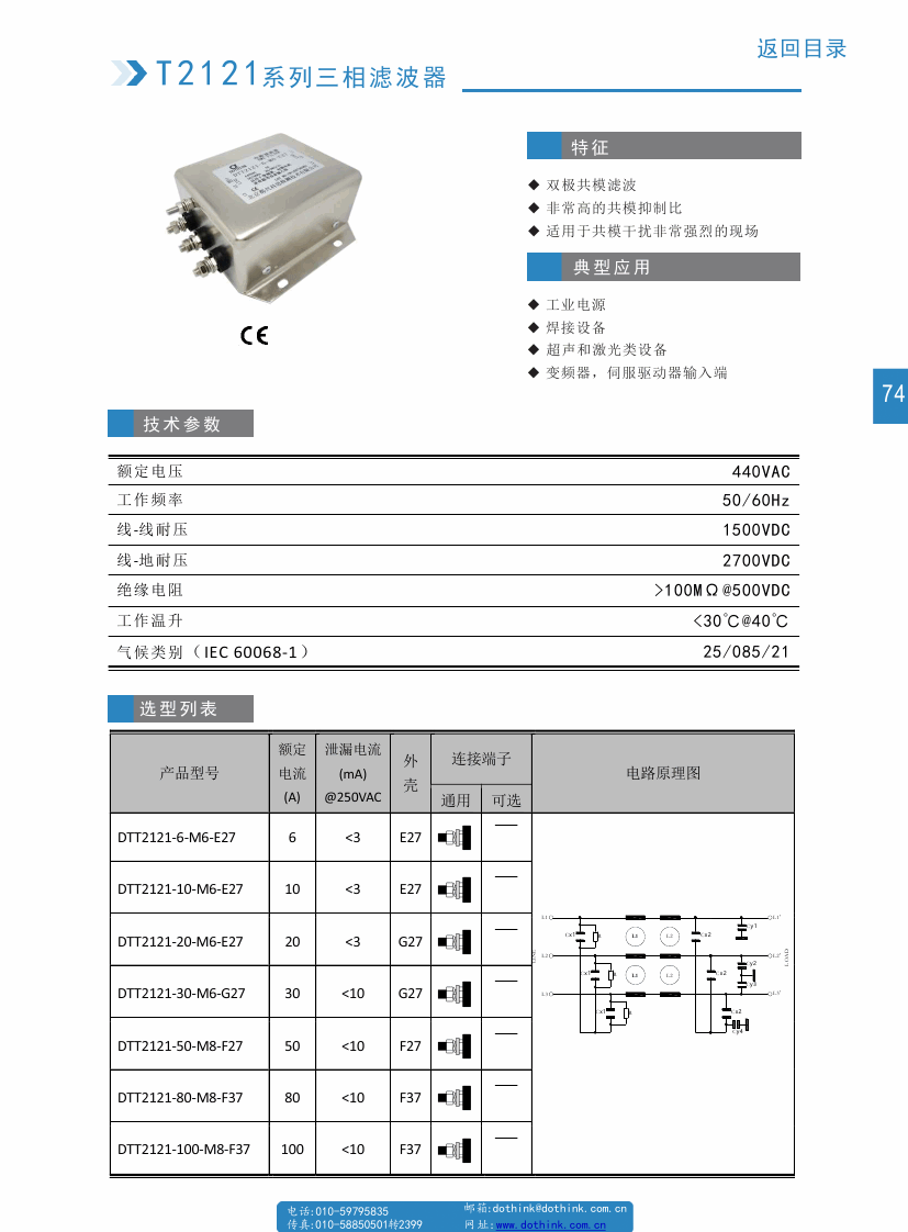 DTT2121系列三相三線變頻器輸入濾波器