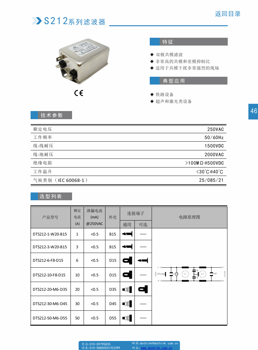 DTS212系列交流電源濾波器